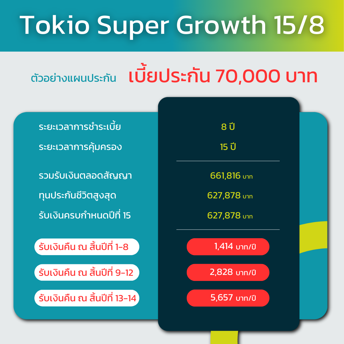 - ซูเปอร์ เซฟวิ่ง 21/7: รับเงินคืน 150% ของทุนประกันภัยเริ่มต้น สิ้นปีกรมธรรม์ที่ 21