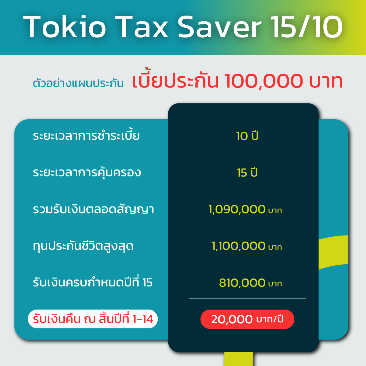 ประกันสะสมทรัพย์ โตเกียว แท็ก เซฟเวอร์ 15/10 (Tokio Tax Saver 15/10)